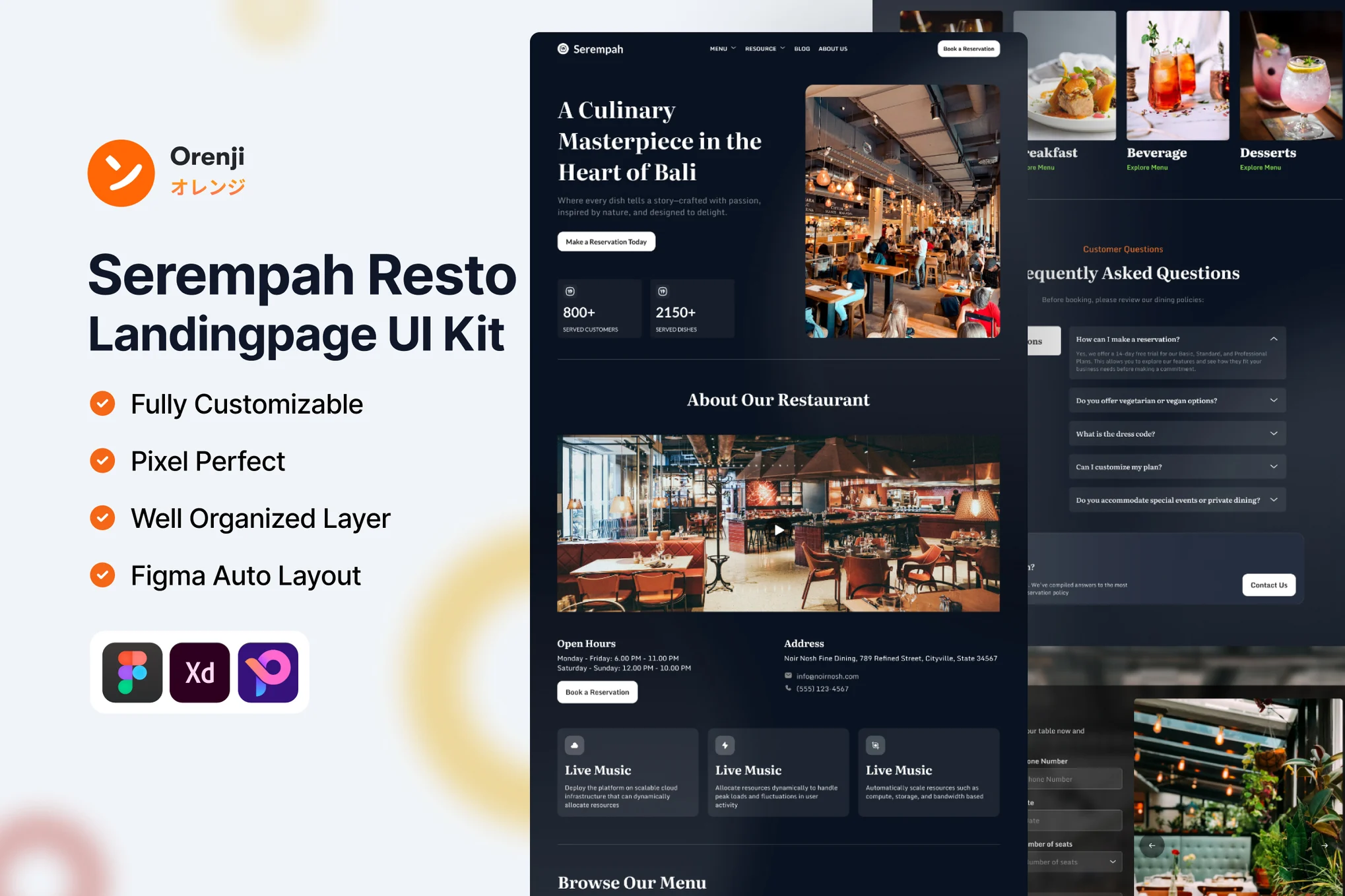 Welcome to Restaurant PSD template perfectly fit for any type of online restaurant websites. The design offers modern, sophisticated and packed with valuable features and assets including 13 pages, menu page, chef details and more booking table assets for your website.